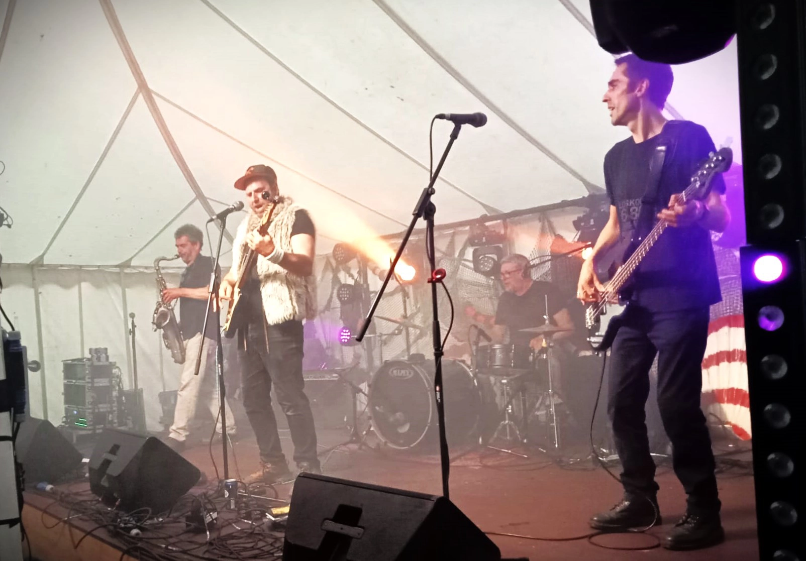 Based in Devon and Somerset, Cavemouth make music to keep the neighbours away and the foxes in. All the members of the band have been playing in the West Country scene and beyond for years in a variety of different bands and styles. The band produce a fabulously gritty original sound, blending blues, funk and hip-hop liberally sprinkled with jazz saxophone and conscious lyrics (or 'Swamp Funk' as the band like to call it). Guaranteed to get people up and dancing, the band are firm festival favourites, having played at Glastonbury, Boomtown, Sidmouth Folk Festival and Clockenflap festival in Hong Kong. Seen below at Seafest. The Band have recorded three albums of original material in the past few years, all available online and on CD.